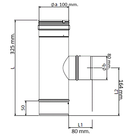 Raccordo a -T- 90° ridotto d. 80 mm maschio per uso interno, in acciaio inox, spessore 0,5 mm., realizzato mediante processi automatici quali saldatura laser longitudinale, bicchieratura femmina con particolare sistema -click-clak- esclusivamente dal diametro 80 al 200 compreso che facilita e velocizza l'installazzione, diametro 100 mm.. tubi fumo per stufe a legna e pellet possono raggiungere una temperatura d'esercizio di 200° con guarnizione siliconica e 600° senza guarnizione siliconica.