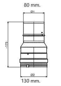 Riduttore maggiorato maschio-femmina per uso interno, in acciaio inox, spessore 0,5 mm., realizzato mediante processi automatici quali saldatura laser longitudinale, bicchieratura femmina con particolare sistema "click-clak" esclusivamente dal diametro 80 al 200 compreso che facilita e velocizza l'installazzione, diametro 80 mm maschio e diametro 130 mm femmina.. tubi fumo per stufe a legna e pellet possono raggiungere una temperatura d'esercizio di 200° con guarnizione siliconica e 600° senza guarnizione siliconica.